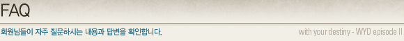 FAQ ´Â ȸ¿ø´ÔµéÀÌ ÀÚÁÖ Áú¹®ÇϽг»¿ë°ú ´äº¯À» Á¤¸®ÇØ ³õÀº °÷ÀÔ´Ï´Ù.